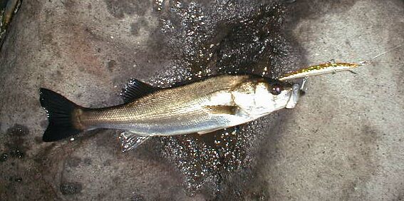 (釣行記) めちゃ風が強い。しかし強行だ、とポイントへ 案の定だーれも居ない。こんな強風の中やるやつがいるかぁ。 はい、居ます。わたしです。^^;。 しかし何とかなるっても、さすがに今日のこの逆風はすごい。波しぶきが炸裂状態。 ヒラでも釣れるんじゃないか?^^; という訳で、逆風が最初きつかったのでまずはバイブレーションで探る。 反応無し。で、移動ながら更に探る事にした。 新調したばかりのタイドースリムに替えて、少しずつ移動しながら探る。 いつも釣れるポイントにきたのでここで少し粘ることに。 するとヒット。結構抵抗する。これはいいサイズか? しかし、寄せてみると結構小さい。強引に抜き上げる。41cm。 勿論というか当然ヒラではない。(笑) でもサイズの割には本当に良く引いたなぁ。この時期のシーバスは元気だ。 しかし、その後は当たりも無く、強風の中粘ったので疲れてしまい、満潮潮止まり近辺で終了。 |
