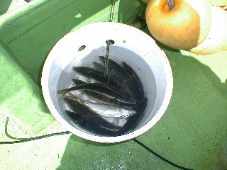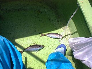 日 時:平成14年4月5日 7:00-14:30 ポイント:観音崎沖 同行者 :無し 気 象:晴れ 海 象:北の風初め強く時化のち次第に凪ぎ 気 温:15度 水 温:不明 魚 種:アジ45匹 体 長:23cmから32cm 重 量:未計測 ラ イ ン:PE4号 仕掛け :ビシアジ3本針 餌 :イワシミンチこませ、イカタン ロ ッ ド:美咲 マニア155 リ ー ル:シマノ 電動丸1000EV 現 認 者:無し本日の画像 ![]() 大漁 ![]() ![]() |