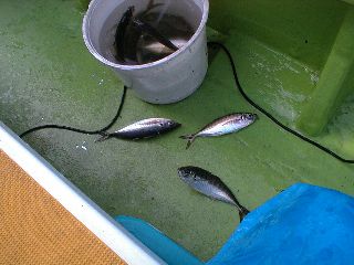 日 時:平成14年4月24日 7:00-15:00 ポイント:久里浜沖 同行者 :無し 気 象:晴れ 海 象:北の風初め強く時化のち次第に凪ぎ 気 温:15度 水 温:不明 魚 種:アジ47匹、サバ1匹、イワシ3匹 体 長:アジ23cmから32cm、サバ45cm 重 量:未計測 ラ イ ン:PE4号 仕掛け :ビシアジ3本針 餌 :イワシミンチこませ、イカタン ロ ッ ド:美咲 マニア155 リ ー ル:シマノ 電動丸1000EV 現 認 者:無し本日の画像 ![]() トリプル ![]() ![]() |