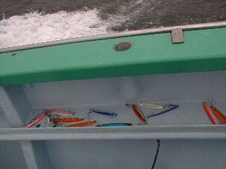 日 時:平成14年6月29日 7:00-14:30 ポイント:竹岡沖 同行者 :会社同僚2名 気 象:曇り、北東風 海 象:穏やか 魚 種:タチウオ12枚 体 長:50cmから100cm 重 量:未計測 ル ア ー:75-110g各種 ラ イ ン:PE1号 リーダー:フロロ25LB+50LB ロ ッ ド:ダイワ ソルティスト60HB リ ー ル:ダイワ ミリオネア・ベイエリアスペシャル 現 認 者:無し本日の収穫物 ![]() ![]() ![]() |