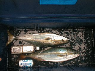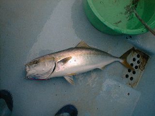 日 時:平成14年10月18日 6:00-13:30 ポイント:鹿島沖 同行者 :知人 気 象:曇時々雨 海 象:少し波あり 気 温:20度 水 温:不明 魚 種:ワラサ2本 体 長:ワラサ、62cm,65cm 重 量:未計測 ル ア ー:60-110g各種 ラ イ ン:PE1号&2号 リーダー:フロロ25LB+50LB ロ ッ ド:ダイワ ソルティスト60HB コスモテックCT661-SP リ ー ル:ダイワ ミリオネア・ベイエリアスペシャル |