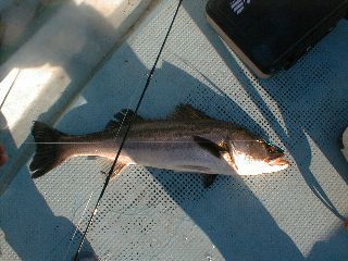 日 時:平成14年11月8日 5:30-11:30 ポイント:長浦沖 同行者 :知人 気 象:曇時々晴れ 海 象:南西の強風 気 温:15度 水 温:不明 魚 種:シーバス22本 体 長:40−82cm 重 量:未計測 ル ア ー:60g前後各種、湾ベイト29g ラ イ ン:PE1号&2号 リーダー:フロロ35LB ロ ッ ド:ダイワ ソルティスト60HB コスモテックCT661-SP リ ー ル:ダイワ ミリオネア・ベイエリアスペシャル シマノ ツインパワー4000 |