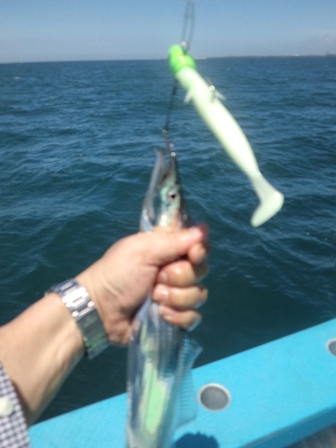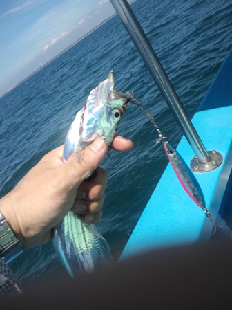 | 基本情報 日 時:平成24年7月30日 8:00-14:30 対象魚:タチウオ 船宿 :かみや ポイント:大貫沖、横須賀沖 天気 :晴れ 餌:ジグ(60g〜100g)、ワーム、サバ切り身 仕掛け:ルアー仕掛け、天秤一本針 ラ イ ン:PE1〜2号 釣果:タチウオ6匹 体 長:60〜80cm 重 量:未計測 |