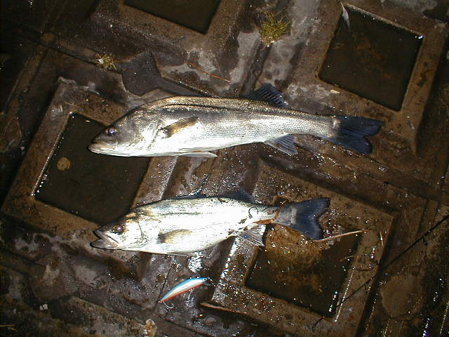 日 時:平成11年2月5日 21:10 ポイント:村田川 気 象:晴れ、無風 海 象:下げ3分 気 温:7度 水 温:不明 魚 種:シーバス(雌雄不明) 体 長:57cm、42cm 重 量:1.5kg、0.6kg ル ア ー:K-TEN 9cm ブルー(腹赤色) ラ イ ン:12lb+25lb ロ ッ ド:ダイワ ハートランド リ ー ル:ステラ ツインパワー 2500 現 認 者:息子 |