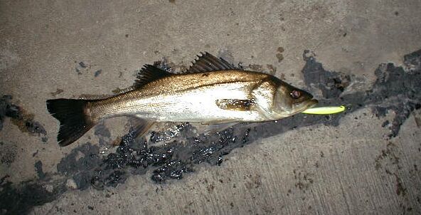 ポイント:船橋港 同行者 :なし 気 象:晴れ、北(強風) 海 象:上げ7分 気 温:不明 水 温:不明 魚 種:シーバス(雌) 体 長:シーバス50cm(20:30) 重 量:シーバス1.3kg ル ア ー:リップインベイト9cm (S)黄色(蛍光) ラ イ ン:10lb+20lb ロ ッ ド:謎の7フィートロッド リ ー ル:謎のリール(2000番) 現 認 者:なし |