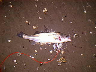 日 時:平成12年11月10日 19:30-22:50 ポイント:市原 同行者 :無し 気 象:曇り、北西(弱) 海 象:下げ7分〜上げ1分 気 温:不明 水 温:不明 魚 種:シーバス(雌) 体 長:シーバス40cm(21:20) 重 量:シーバス0.6kg ル ア ー:マールアミーゴ8cmシルバー ラ イ ン:PE1.5 リーダー:25lb ロ ッ ド:SPS862 リ ー ル:バイオマスター2500 現 認 者:無しシーバス40cm ![]() |
