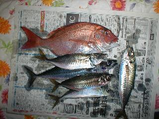 日 時:平成13年6月27日 13:30-17:30 ポイント:富浦沖 同行者 :知人 気 象:晴れ 海 象:南西の強風 気 温:不明 水 温:18度 魚 種:アジ、サバ、真ダイ 体 長:25cmから30cm 重 量:未計測 ル ア ー:餌、こませ、イカタン ラ イ ン:PE6号 リーダー:胴付き3本針 ロ ッ ド:詳細不明(中通し、60号おもり負荷) リ ー ル:不明(知人から借用したものなので) 現 認 者:知人真ダイに、サバに、アジ ![]() |