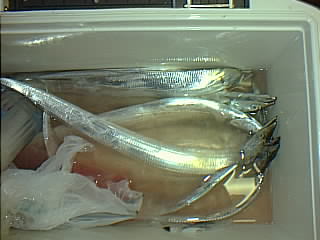 日 時:平成13年7月30日 6:00-14:00 ポイント:竹岡沖 同行者 :息子 気 象:晴れ 海 象:凪のち南西の風やや強い 気 温:25度〜30度 水 温:不明 魚 種:太刀魚14匹、真鯖1匹 体 長:太刀魚60cm〜100cm、真鯖45cm 重 量:未計測 ル ア ー:60-80gのジグ各種 ラ イ ン:12LB、PE2号 リーダー:20LBフロロ ロ ッ ド:ケンクラフト6.6f、 釣具店スペシャル6.6f リ ー ル:アルテグラ3500、 アクシア101(ベイト) 現 認 者:息子本日の収穫物 ![]() |