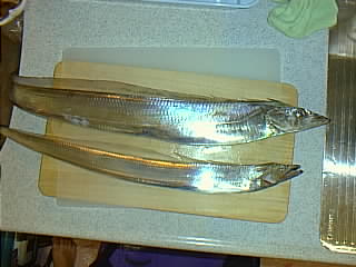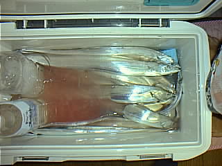 日 時:平成13年8月4日 6:00-14:00 ポイント:竹岡沖 同行者 :息子 気 象:晴れ 海 象:凪のち南西の風やや強い 気 温:25度〜30度 水 温:不明 魚 種:太刀魚22匹 体 長:太刀魚60cm〜110cm 重 量:未計測 ル ア ー:60-80gのジグ各種 ラ イ ン:PE2号 リーダー:20LBフロロ ロ ッ ド:釣具店スペシャル6.6fベイト リ ー ル:アクシア101 現 認 者:息子本日の収穫物 ![]() 上は指5本サイズのビッグワン 下は指3本弱のレギュラーサイズ ![]() |