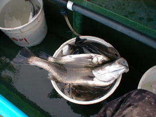会社の同僚2名との平日釣行(有給) いつもの「かみや」でお世話になる。 タチウオ&シーバス狙いだ。 最近シーバスはさっぱりだったようだが、ここ数日回復の兆しがあるという。 よって様子を見ながらタチウオとシーバスを狙うことに。 シーバスが不調のようでここしばらく出船していなかった模様。 今日もわれわれ3人だけの、まるで仕立て船。 朝一はタチウオかと思いきや、最近復調気味のシーバスから狙うことに。 近場のバース回りを探る。 20分くらい攻めたがまるであたりが無い。 海ほたる付近に移動。 多少波立っている。 開始早々ヒット! 50cm弱のレギュラーサイズ。 しかしその後はまるであたりが無く、タチウオを狙うことに。 観音崎には多数の船が集結している。 早速開始するが、しゃくれどもしゃくれども当たりが来ない。 まわりの船を眺めても、釣れている様子は観察出来ない。 これはかなり厳しそうだ。 ジグを取り替えながら、何度目かの流しにやっとヒット! ロッドが大きな弧を描き、久しぶりのタチウオの引きを味わう。 そして無事ゲット。90cm台のまぁまぁのタチウオだ。 しかし、その後も反応は渋めで思い出したように当たりがあり、午前中結局トータル5本という寂しさ。 知人はそれぞれ1本と3本という貧果。。。 そして潮変わりを機に再びシーバス狙いへ変更。 何でも上げ潮に良い反応が出ているとか。 朝のポイントに戻る。 午前中1本出たポイントを最初探るもノーバイト。 他船からの情報を元に別のポイントに移動。 魚探反応はまずまずらしい。 確かに2,3本出たがそれっきり。。。 そこで最近上げ潮時ナンバーワンポイント(朝一に攻めたポイント)に移動。 がしかし、全くと言っていいほど当たらず、1本追加したのみ。 で、30分でさっきのポイントにUターン。 残り1時間半くらい。今日はこれで終わりか?・・・・ ところがこの30分で潮の効きがかなり良くなったようで、反応がかなり盛り上がっているらしい。 すぐにヒット。しばらくして同僚にもヒット。 こんな感じでぼつぼつとヒットし始めた。 やっと皆やる気になり始めた。 そこからがすごかった。 30分位してから、同僚に立て続けにヒットする。 それも2人して交互にヒットしている。 ところが自分はなかなか当たらない。 同僚のジグを見るとブルー。 自分は赤金。 色か? そこでラフェスタのブルーに変えて投入するといきなりヒット! 次の投入でもヒット! やはり色に反応しているらしい。 そんな感じでヒットが連続するが、レギュラーサイズが多い。 しかし、途中ヒットと同時にドラグを引き出すやつが。おおっ、大物か? がしかし、直後にばれる。 うーん、残念。。。逃がした獲物はでかい。 この大物を逃した直後10分間急にまったく当たらなくなった。 終わったか?。。。 ところが、10分後くらいにまたぼつぼつと当たりはじめ、そのうちジグが底に着かないでヒットするようになる。 よく見るとぬき上げたシーバスはほとんどがイワシをはき出している。 かなりのイワシが乱舞しているようだ。 そこでイワシの形によく似たシーフラワーブルーに変更。 案の上ジグが底に着かない。 しかし、釣れるのはレギュラーばかり、バラシも多い。 不規則な落とし込みをしていると、さっきの大物と似たような引き込みを見せる当たりが。 慎重にやり取りをして上がったのは64cmのグッドサイズ。 そしてさらに1匹60cm台を追加して、遂に時間切れ。 今日の釣りはラスト1時間が全て。 シーバストータル18匹。タチウオ5匹。 シーバスはほとんど最後に釣ったものだ。 しかし、ちょっとしたことでこんなにも状況が変わるとは思わなかった。 30分前までは全然食わなかったのに、いきなり爆釣状態に変わるとは。 あと1,2時間もやっていればさらに2,30匹かるく追加したことだろう。 なにせ、ジグが底までなかなか落ちない食いの中での終了だったからね。 最後の1時間とはいえ、最後の最後で興奮を味わえて満足。 |